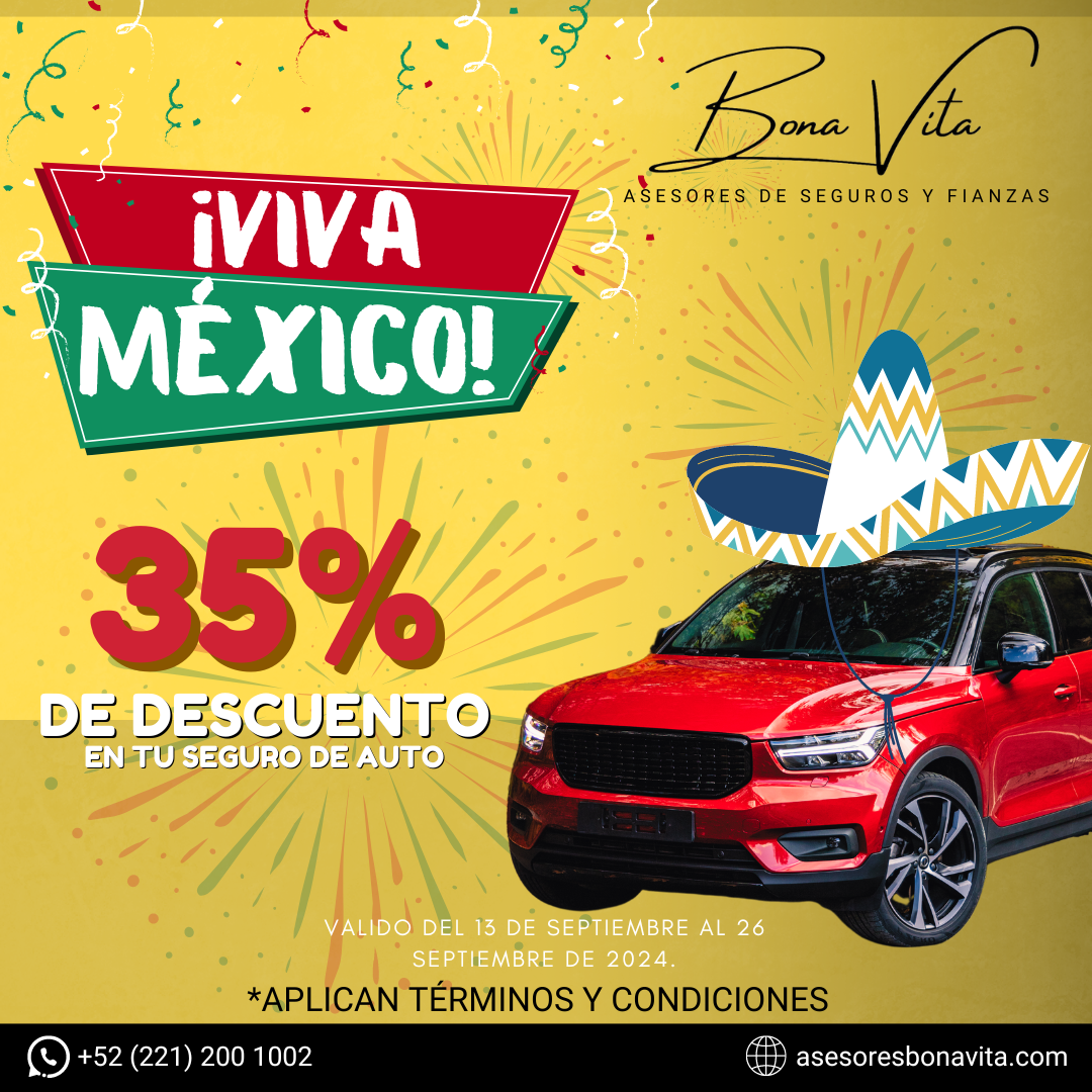 CONTRATA TU SEGURO DE AUTO DURANTE EL PERIODO VALIDO DE LA PROMOCIÓN Y RECIBE HASTA UN 35% DE DESCUENTO EN TU SEGURO DE AUTO, SEGÚN EL ESTADO DE CONTRATACIÓN.
