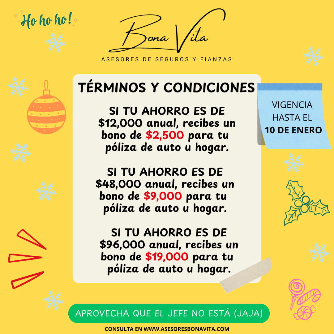 - Para hacer válida tu participación es necesario comunicarte directamente a alguno de los medios oficiales de Bona Vita Asesores de Seguros y Fianzas y haber realizado el pago de manera efectiva de la póliza antes de la fecha limite.